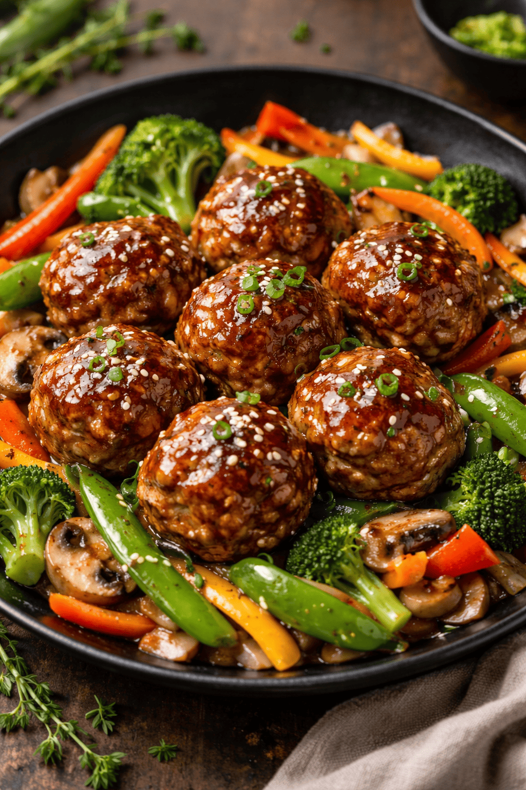 Boulette de porc à l’asiatique et petits légumes