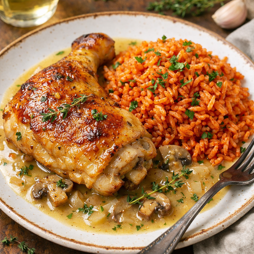 Soyez le premier à laisser votre avis sur “Poulet rôti, sauce vin blanc et thym”